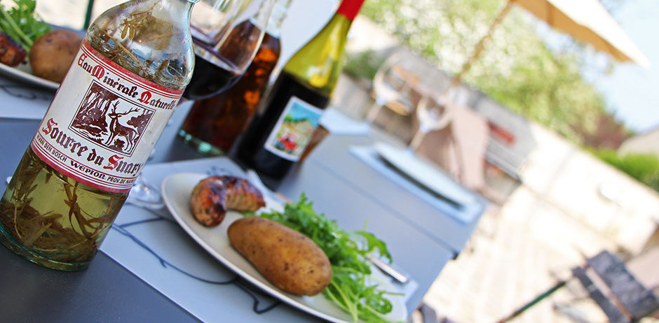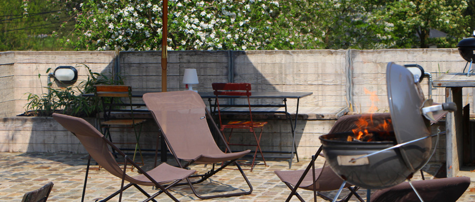 Au réveil la vaste terrasse vous permettra de prendre le petit déjeuner, plus tard dans la journée l’apéritif sous les platanes, de préparer une grillade (barbecue) dans les espaces cuissons extérieurs réservés à chacun des gîtes.