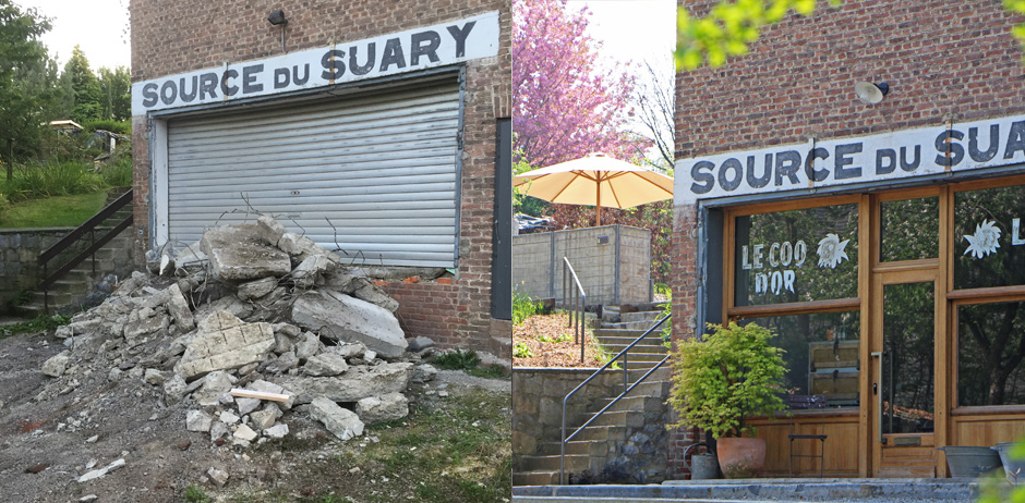 La source continuait de s’écouler en fin filet, alimentant un petit étang bucolique…L’endroit fut ensuite loué et racheté depuis les années 80 par une personne qui maintenu le bâtiment en état et conserva les précieux trésors comme les anciennes étiquettes, des bouteilles plus rare, les casiers en bois et les fameux dépliants publicitaires imprimés pour l’exposition internationale de l’eau, à Liège. C’était en 1939.